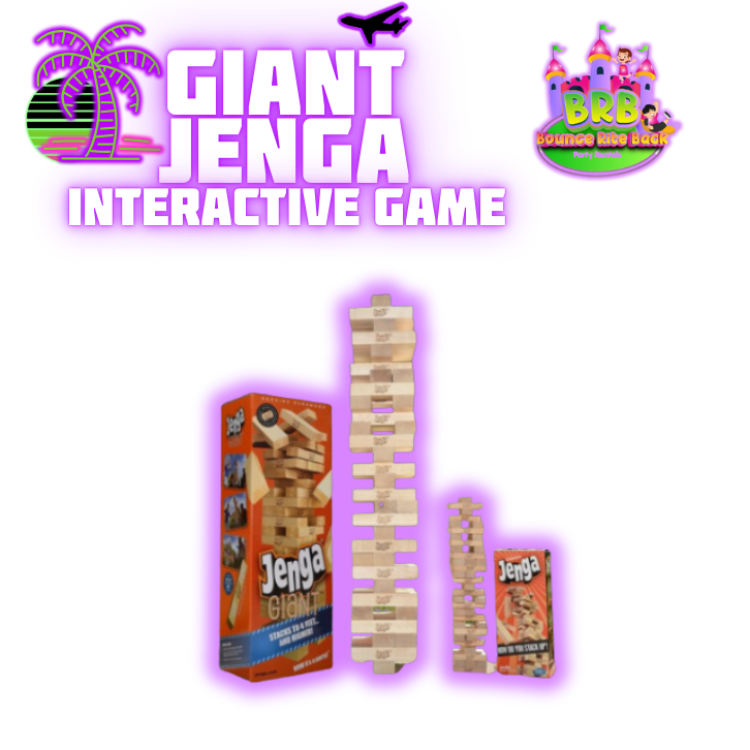 A Giant Jenga is the perfect add on for your Broward County bounce house rental. A giant twist on the old school game will leave a lasting memory with guests of all ages. Let us help you design your custom party rental package with this Giant Jenga as the perfect accessory. Always clean and sanitized.